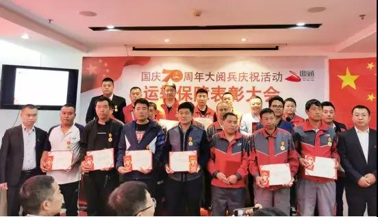 对在本次保障任务中勇于担当、树立四通良好社会形象的14名优秀人员授予“四通超人”勋章。“四通超人”奖项是董事会授予总裁权利,给予表现优秀、特殊贡献的员工奖励。道路运输协会王旭会长与四通搬家董事长陈杰为获得荣誉的先进员工颁发证书和纪念奖章。